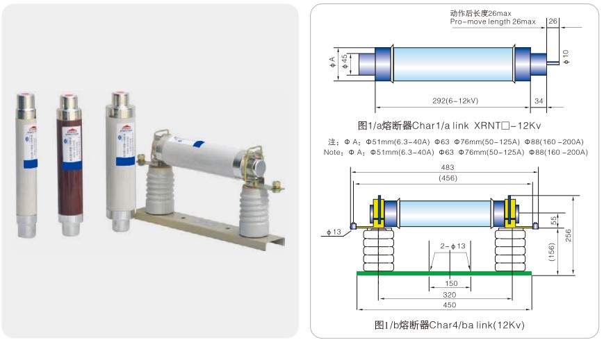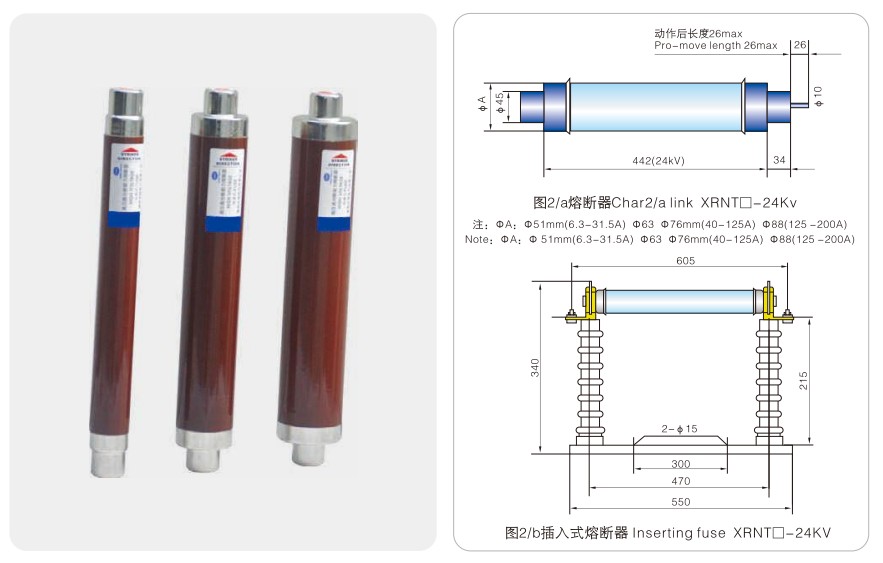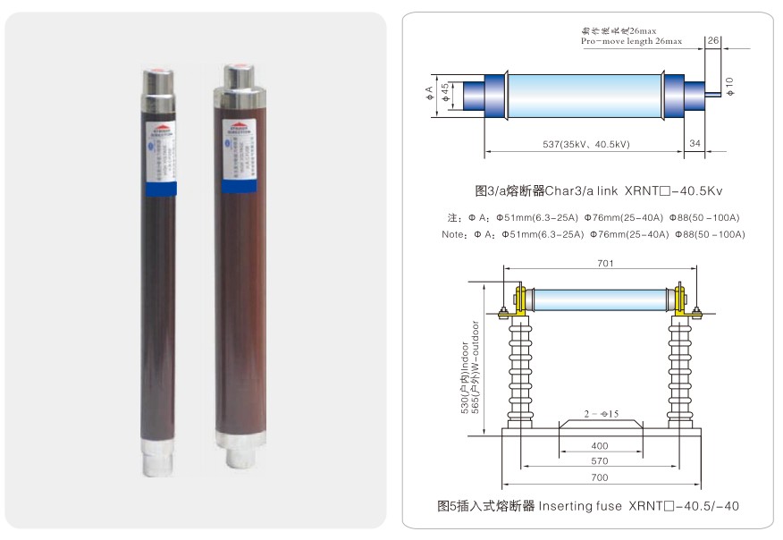 नमूना रेटेड वोल्टेज यूएन(केवी) पिघला हुआ वर्तमान रेटेड इन (ए) पिघलने वाले पाइप का आकार①xC(मिमी) टिप्पणी