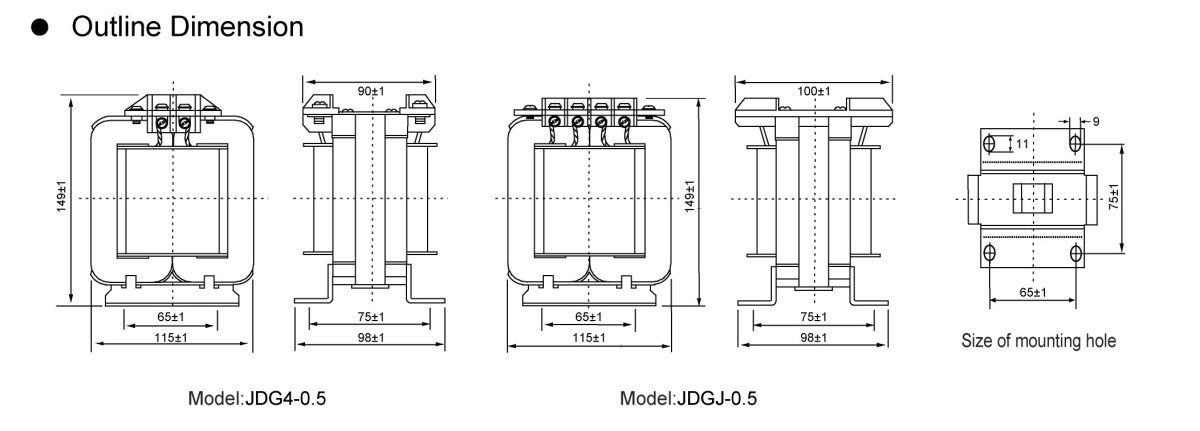 JDG4-0.5 इनडोर लो वोल्टेज ट्रांसफार्मर स्थापना के आयाम